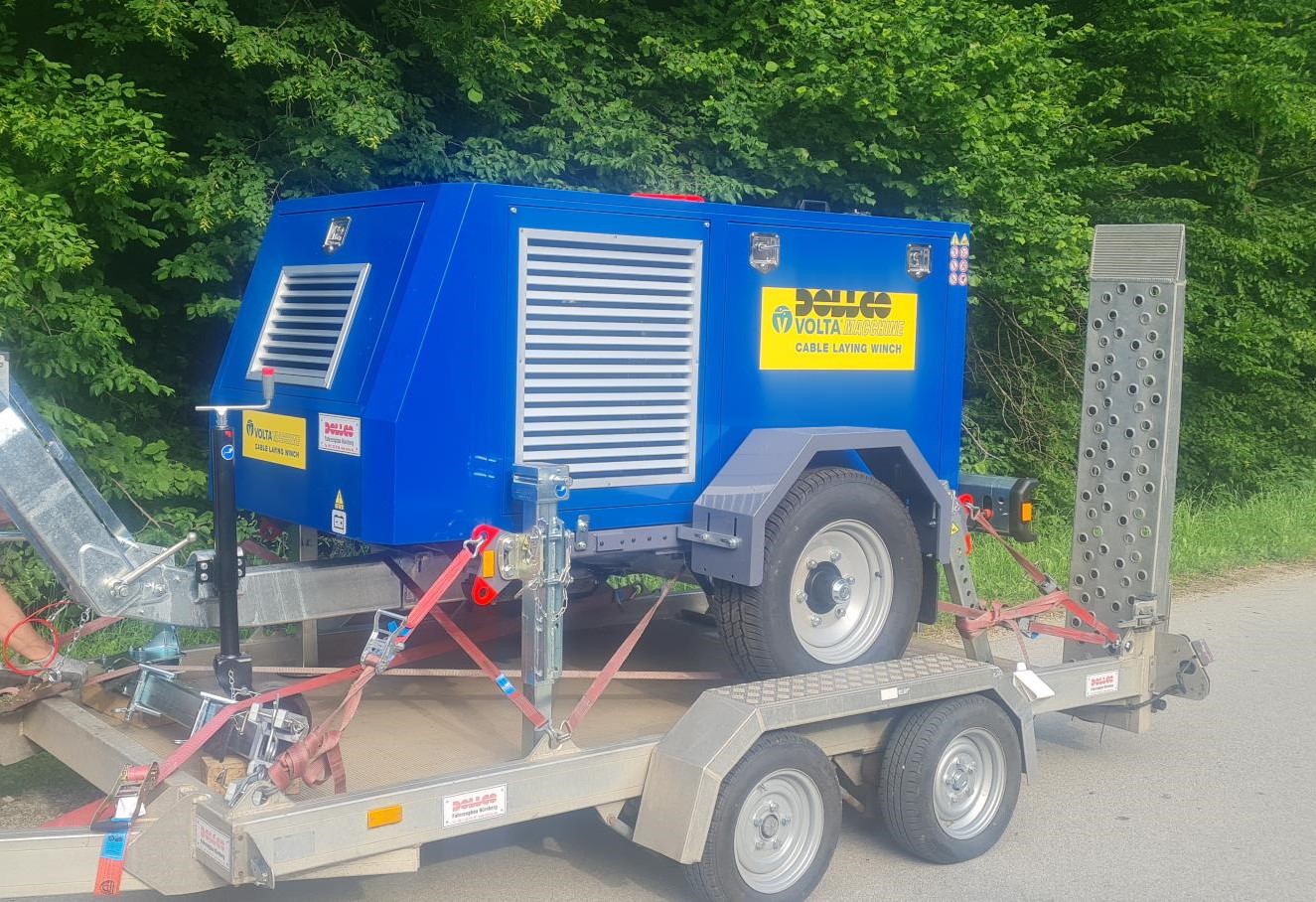 Za kakovostno in varno polaganje kablov uporabljamo sodoben vlečni stroj Volta Macchine Dollco, zasnovan posebej za zahtevne podzemne elektroinštalacije.